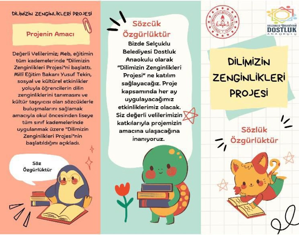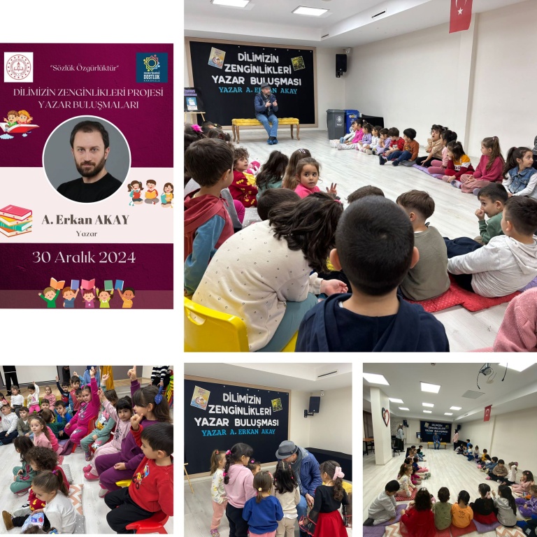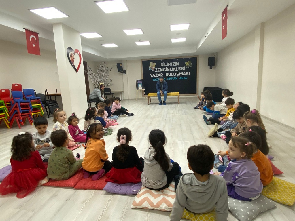 Okulumuzda Dilimizin Zenginlikleri Projesi kapsamında yazar buluşmalarımızı gerçekleştirdik. Masallar dinlendi, söyleşiler yapıldı. Böylece Dostluk Anaokulu öğrencileri kitapların yalnızca kapakları ve içeriklerinden ibaret olmadığını, arka planda hikayeler ve onları yazanların kimler olduğunu, hangi duygularla yazıldığını öğrendiler.